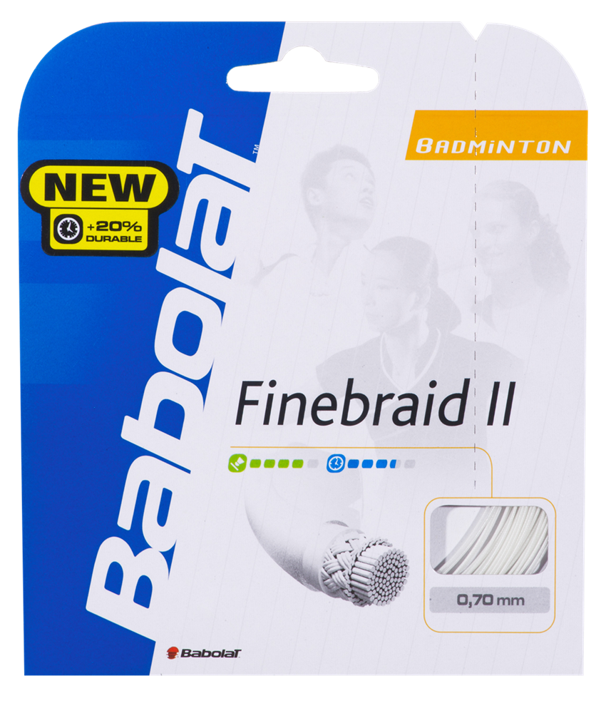 Badmintonový výplet Babolat Finebraid v černé barvě má v průměru 0.7 mm. Vysoce výkonné multivlákno vylepšené o nejnovější IMS technologii. IMS technologie převzatá z vysoce výkonných tenisových strun, které obsahují mikročástice křemíku zakomponovaných ve vnější vrstvě struny - zajišťuje trvanlivost struny, aniž by omezil její pružnost. Drobné křemíkové částečky zlepšují trvanlivost výpletu o 20%. Tato středně silná struna je speciálně navržená pro dobrý cit a trvanlivost.